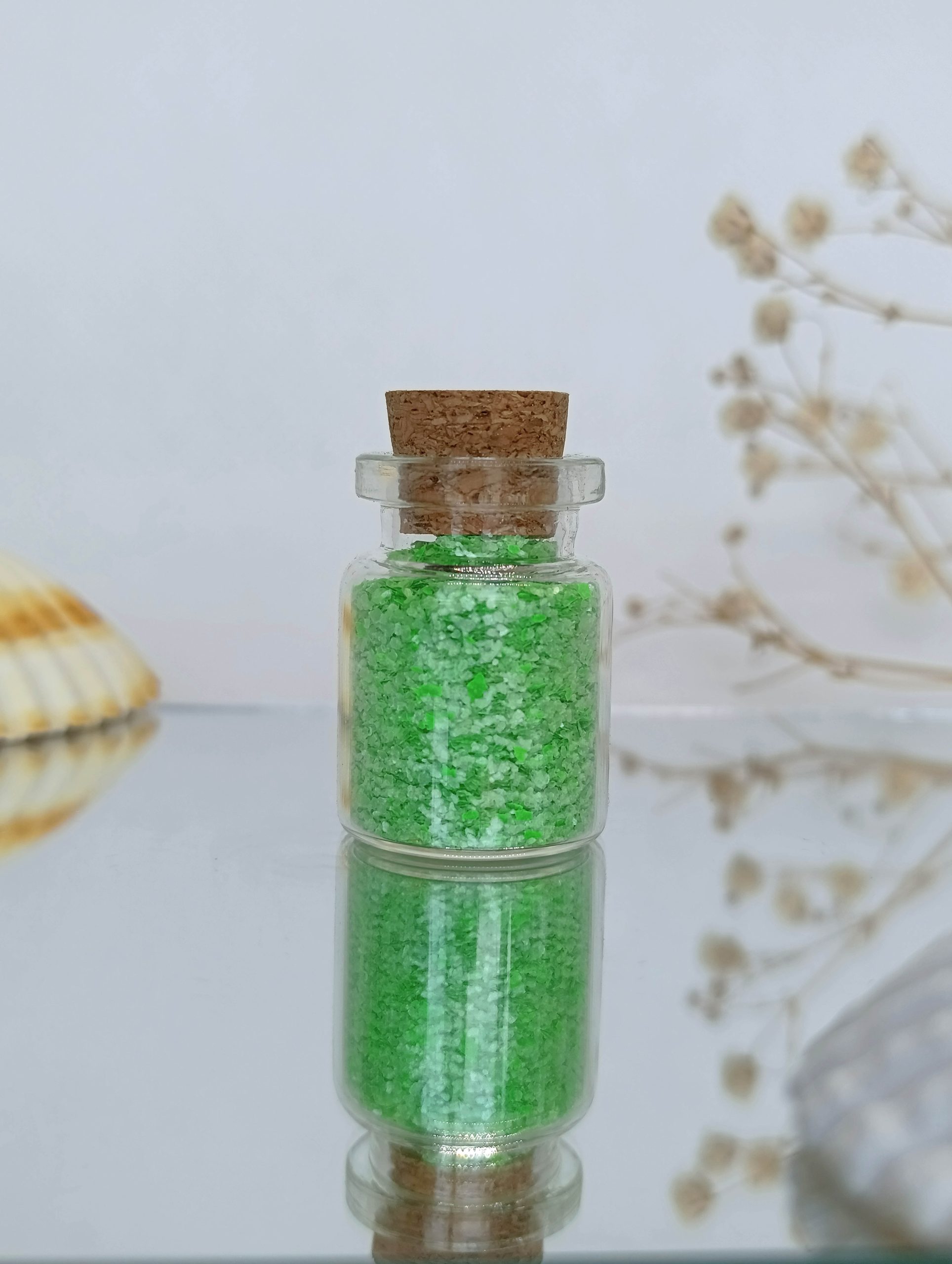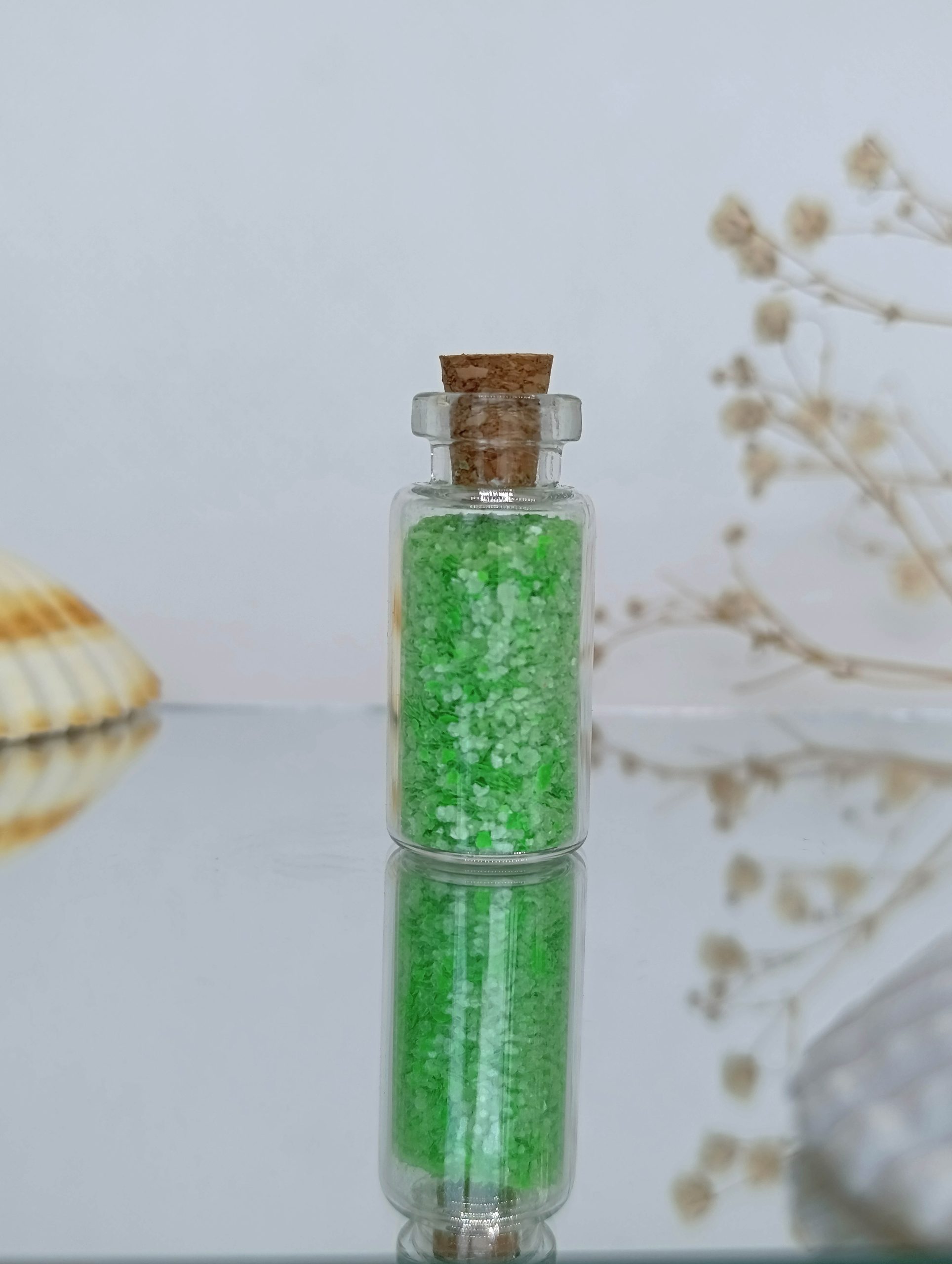 El tono verde pastel-neón como glitter es vibrante y dinámico, añadiendo un toque especial a cualquier creación. Su base suave evoca frescura, mientras que bajo luz UV se transforma en un brillante verde neón que irradia energía y alegría. Este glitter destaca no solo por su color impactante, sino también por su capacidad para reflejar la luz, creando un efecto deslumbrante. Es ideal para eventos festivos o para dar un toque divertido al estilo diario, siendo perfecto para quienes quieren expresar su personalidad con modernidad y vitalidad. ¡Invita a brillar!
