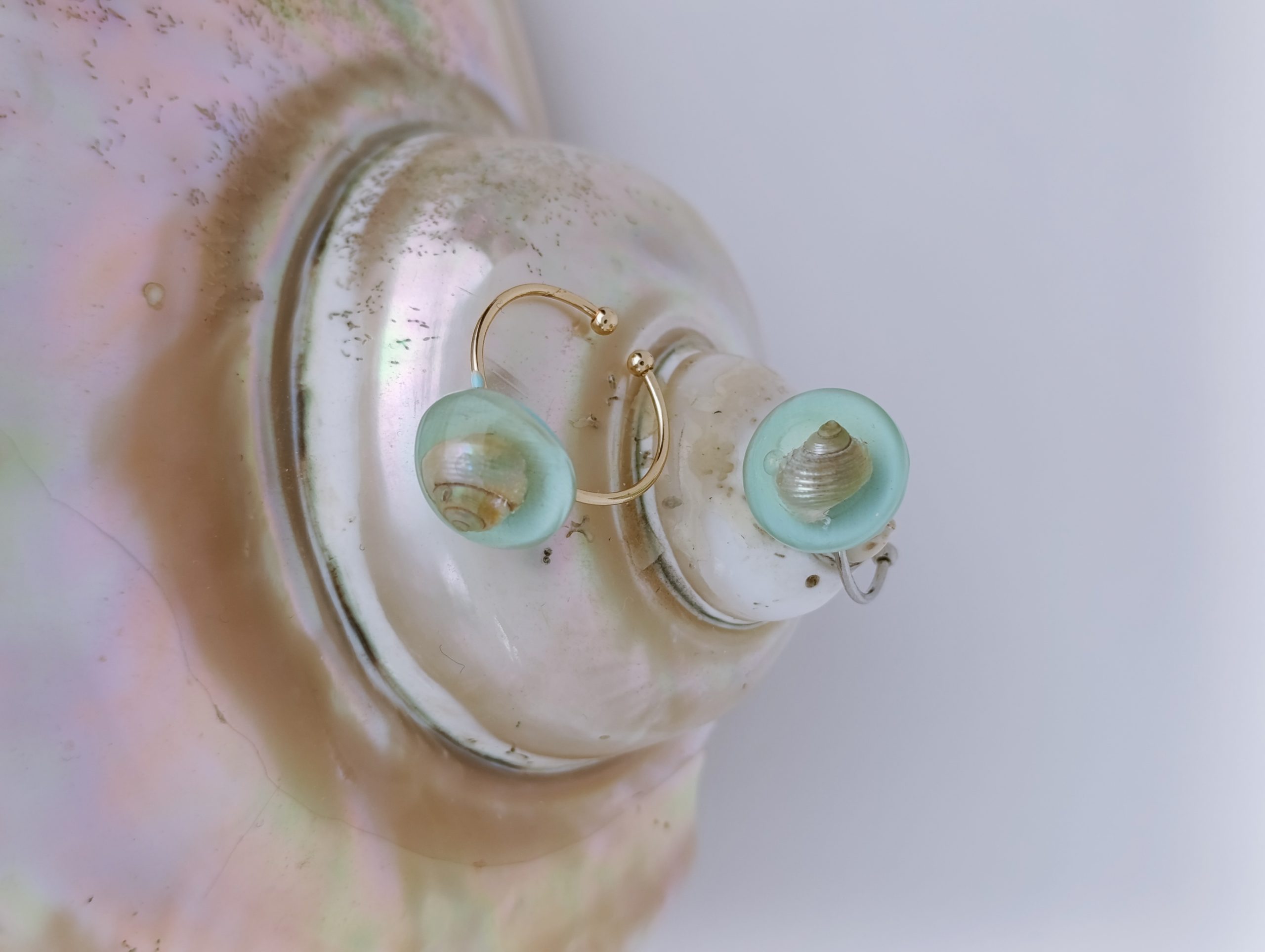 El anillo Caracol está elaborado a mano con resina de alta calidad y elementos naturales, combinados con acero inoxidable. Este anillo es una obra maestra que celebra la belleza y la fuerza femenina.